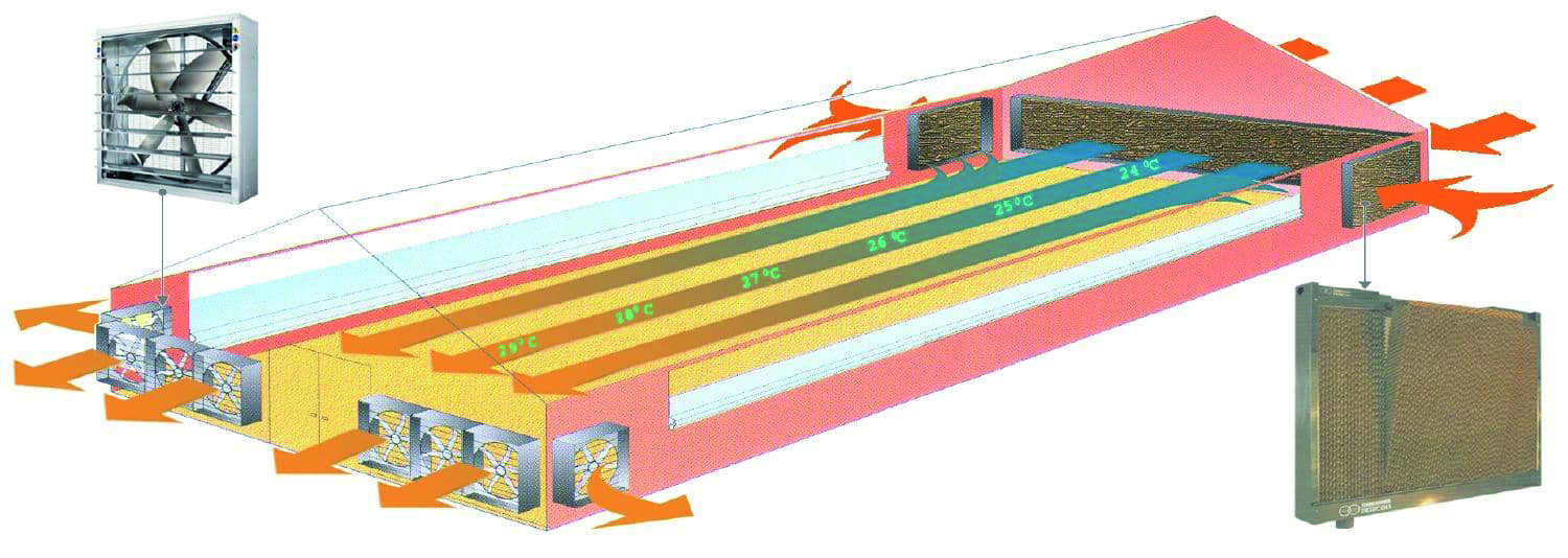 Evaporatif soğutma panelleri kümeslerde sıcaklığa bağlı olan verim azalmasının veya ölüm risklerini en aza indirir.