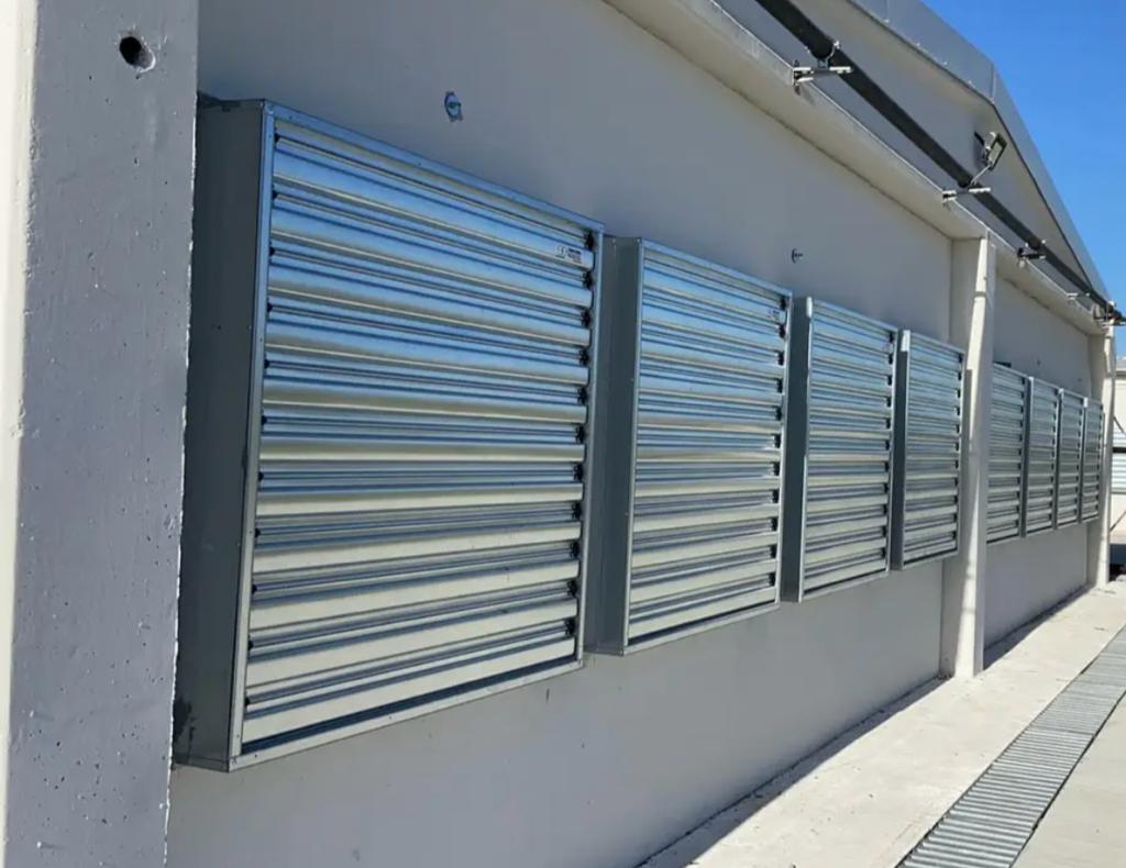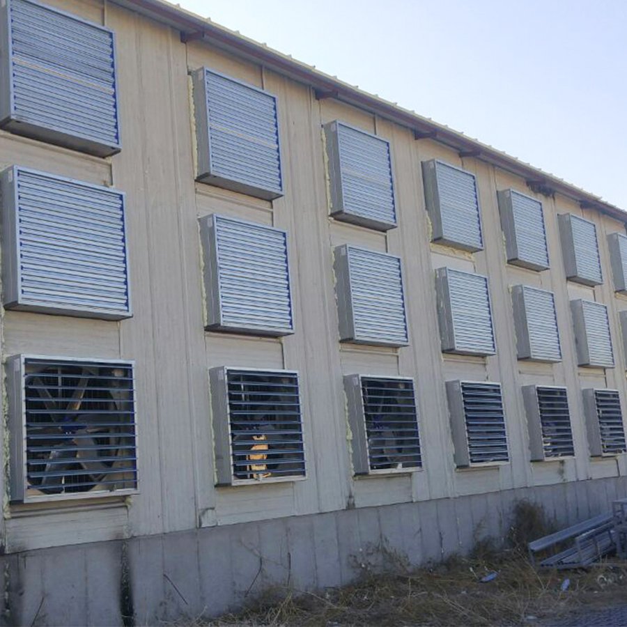 Fan muhafazası ve venturi sert galvanize çelik levhadan yapılmıştır. Panjurlar en yüksek direnci sağlayacak şekilde preslenmiş galvanize çelikten yapılmıştır. Her motor tek tek %100 kalite kontrolü için test edilmiştir. Orta göbek ve v-kayışlı kasnak dökme alüminyumdan imal edilmiştir. Pervane statik ve dinamik olarak ayarlıdır. Panjur yatakları bakım gerektirmez. Erezyon ve paslanmaya karşı magneliz kaplamadır. Toz korumalı açma kapama. Yeni ve geliştirilmiş tasarımlı ve kayışlı kasnak. Fan ölçüleri 138×138 cm ve 6 kanatlıdır.